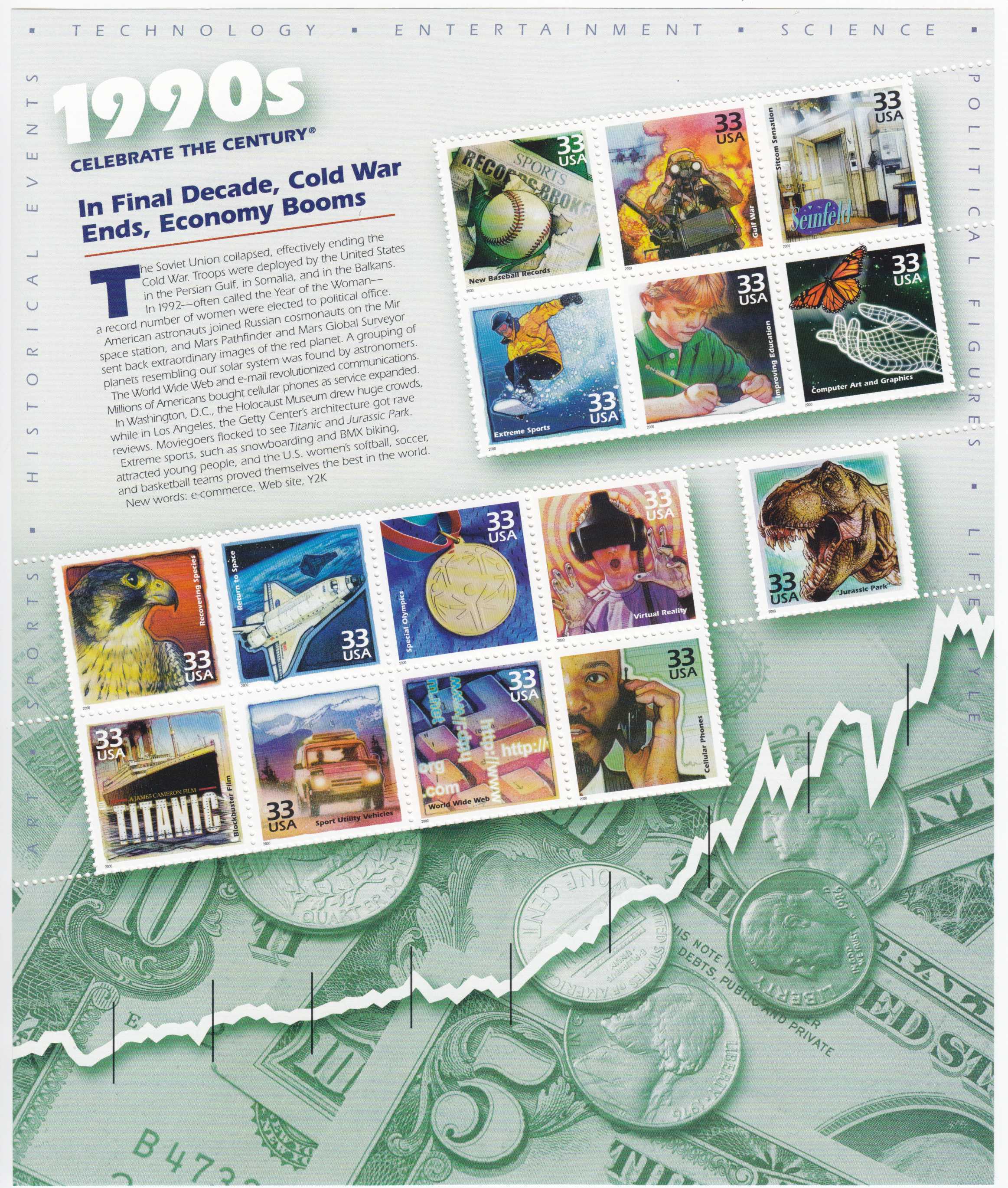 | N148652 | США 2000. Динозавры, космос и эволюция. Сувенирный лист 15 марок (**) |  | 660 |  |