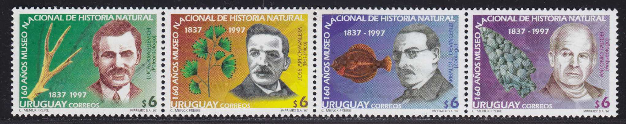 | N148658 | Уругвай 1997. Окаменелости и исторический музей. Серия 4 марки в горизонтальной сцепке (**) |  | 435 |  |