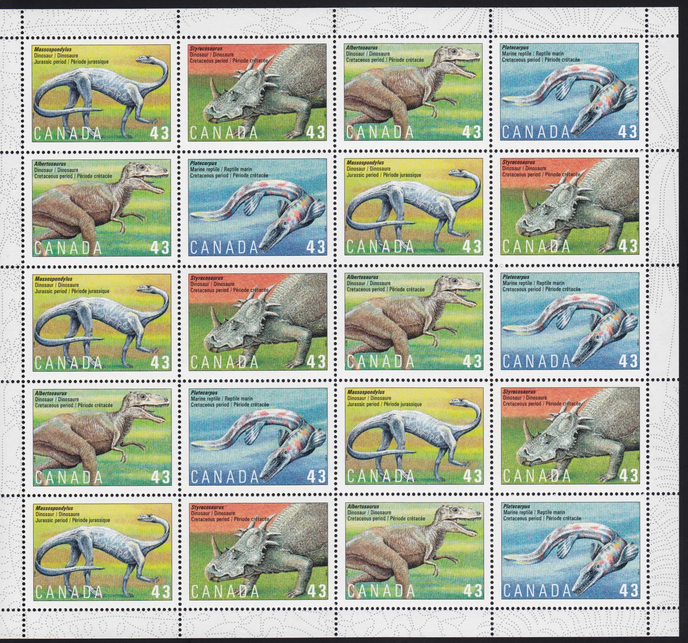 | N148662 | Канада 1993. Динозавры. Сувенирный лист 20 марок (**) |  | 2020 |  |