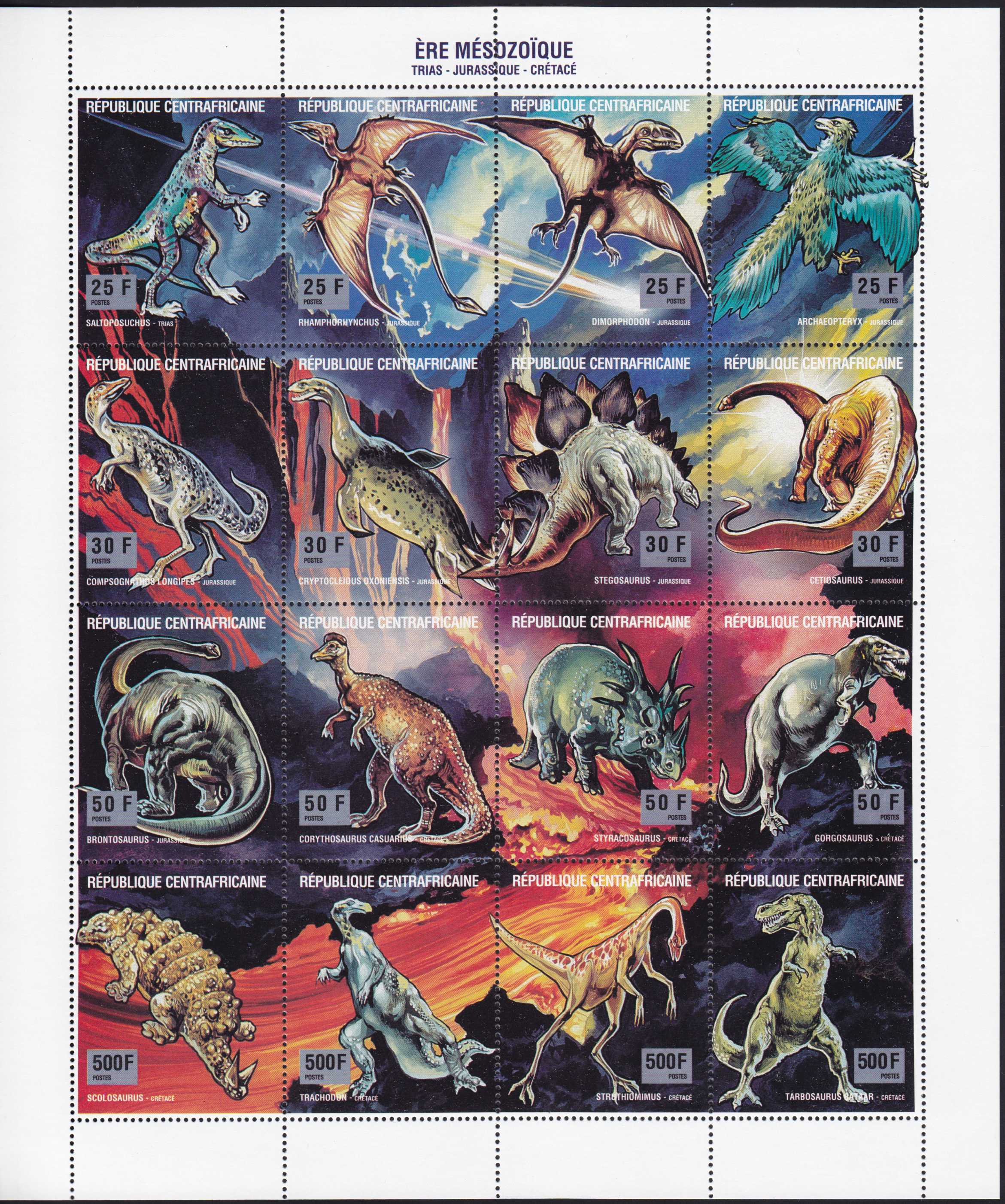 | N148664 | Центральная африканская республика 1993. Динозавры. Сувенирный лист 16 марок (**) |  | 1585 |  |