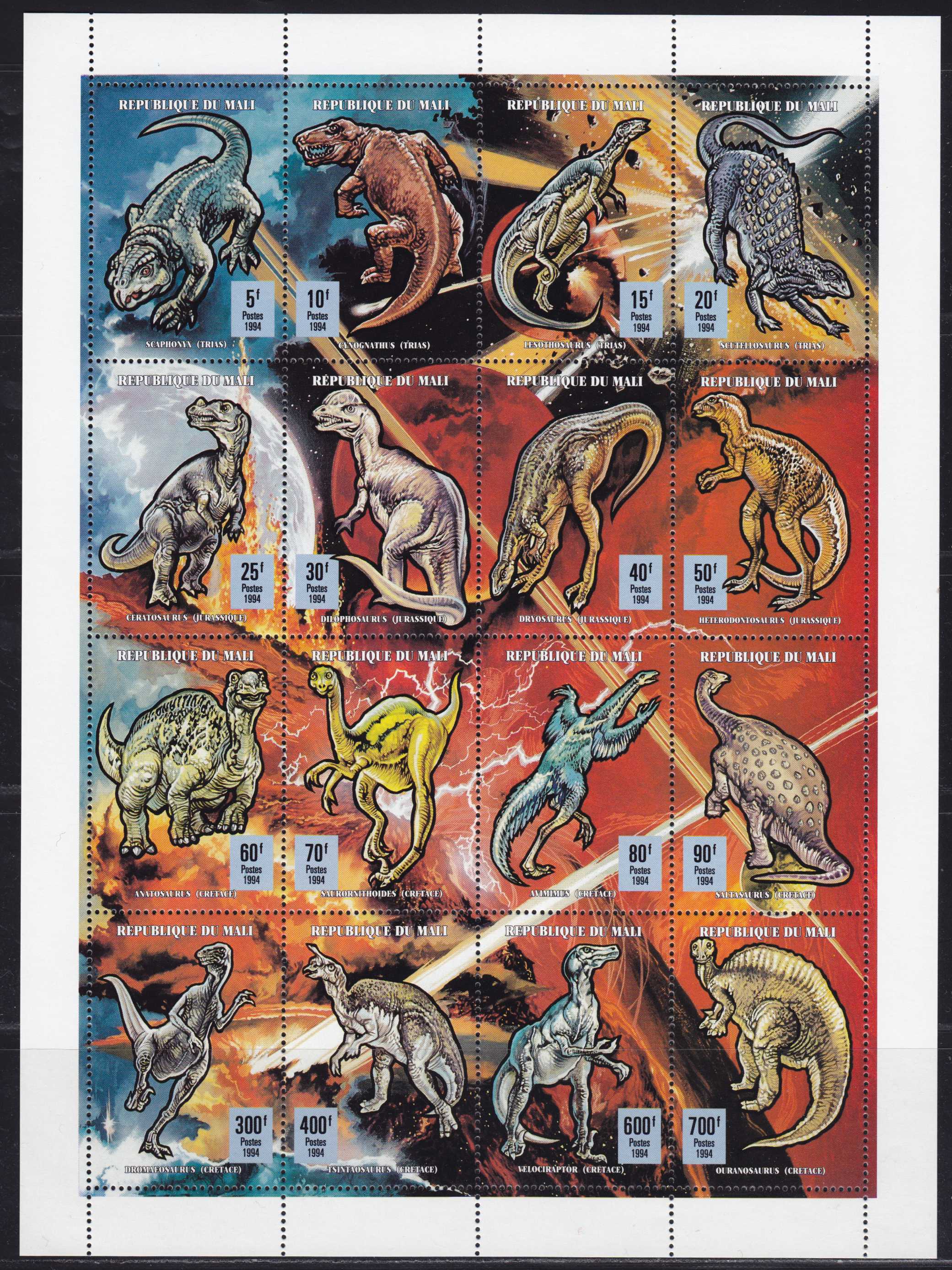 | N148666 | Мали 1994. Динозавры. Сувенирный лист 16 марок (**) |  | 1300 |  |