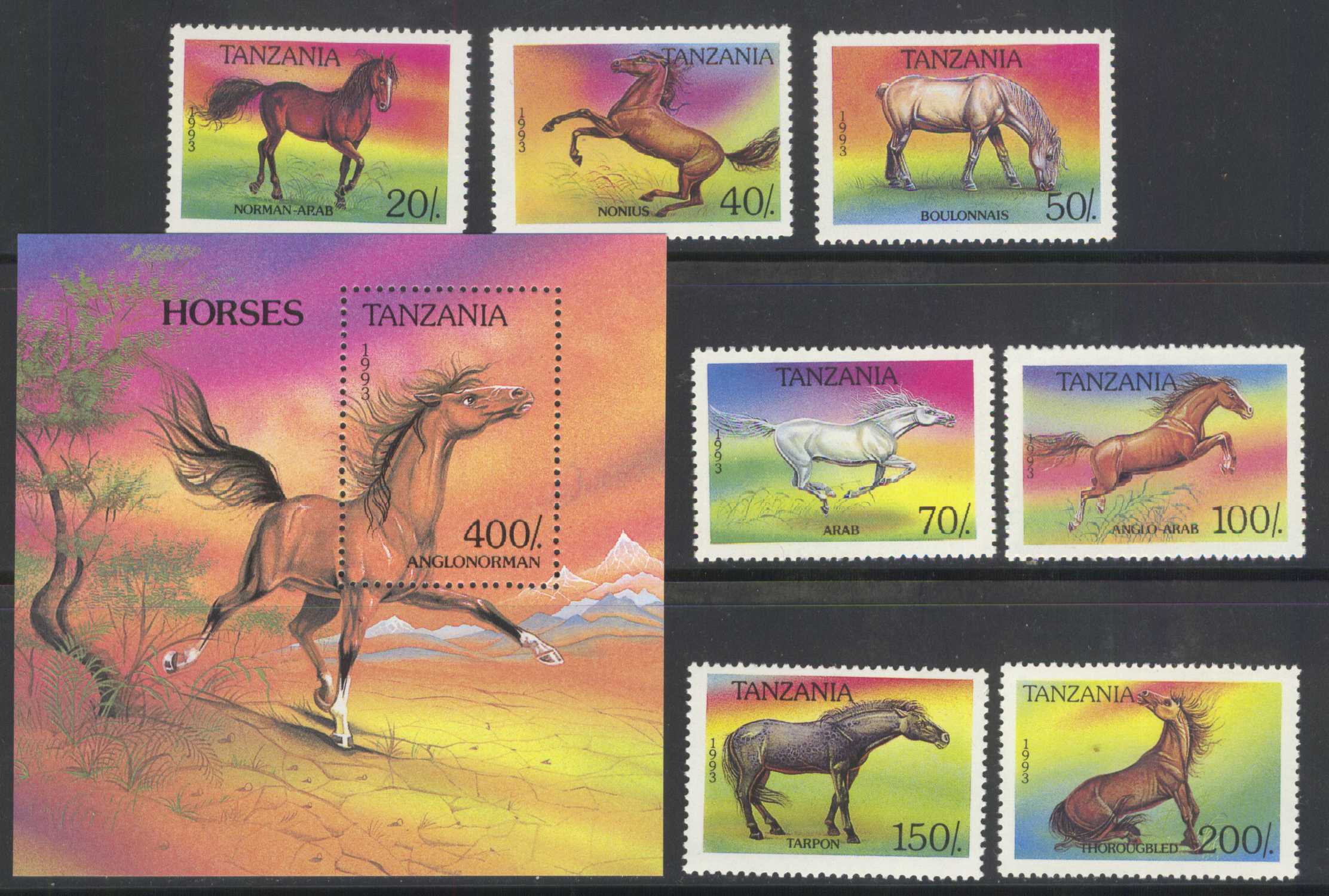 | N148670 | Танзания. Лошади. Серия 7 марок и сувенирный блок (**) |  | 580 |  |