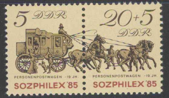 | N148671 | ГДР 1985. Лошади и кареты. Серия 2 марки в сцепке (**) |  | 75 |  |