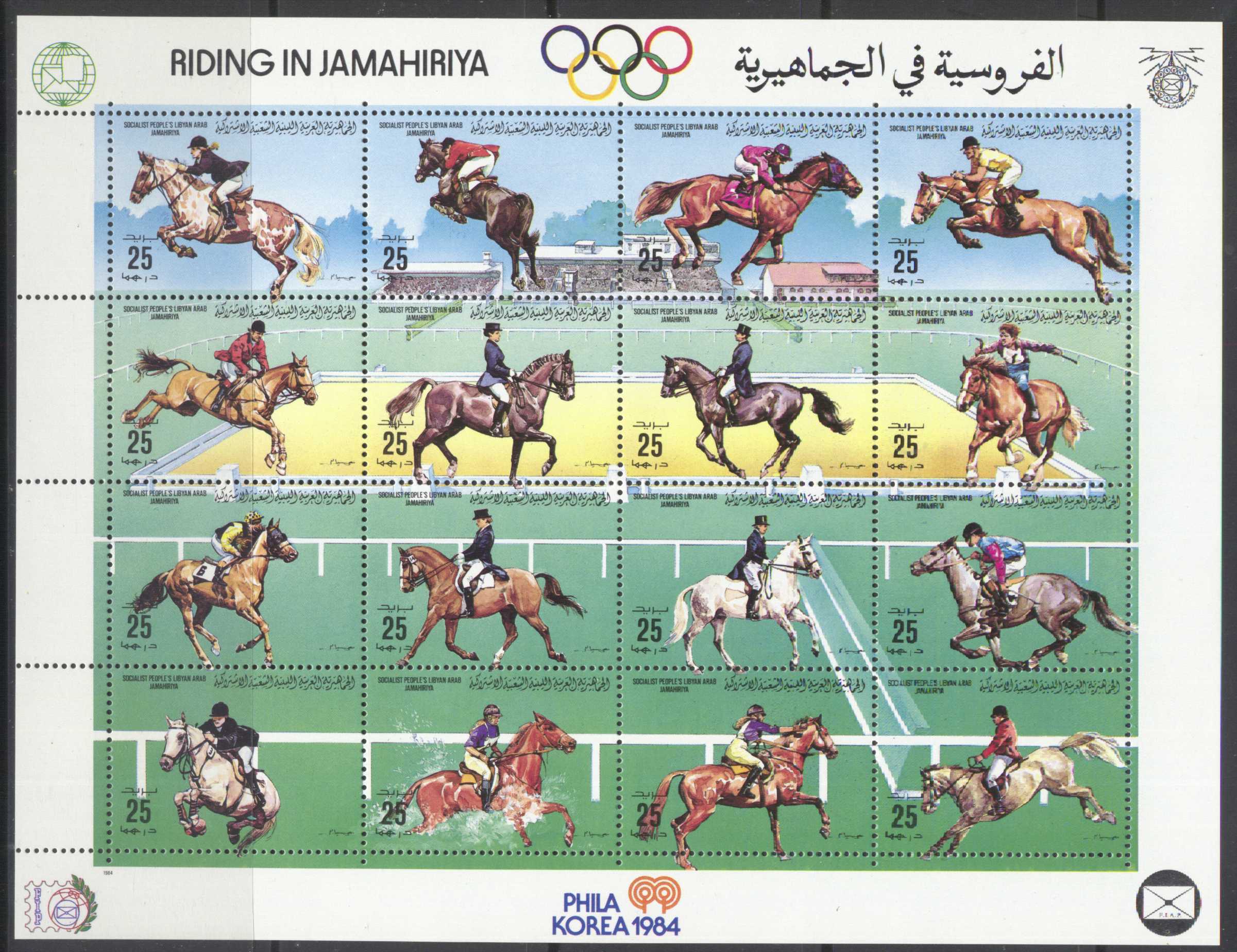 | N148675 | Ливийская Арабская Джамахирия 1994. Выездка. Сувенирный лист 16 марок (**) |  | 1440 |  |