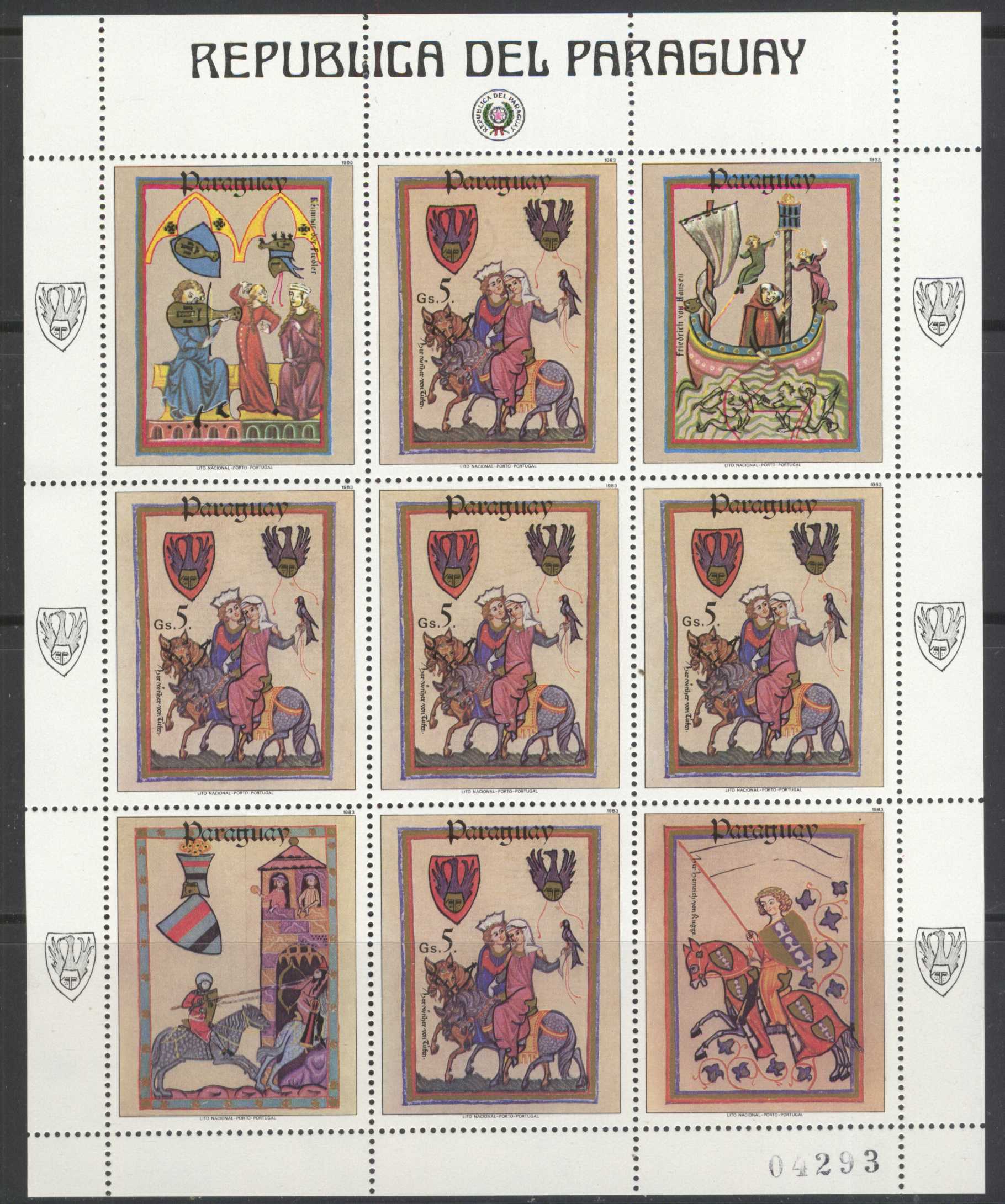 | N148676 | Парагвай. Всадники и лошади. Сказки и легенды. Сувенирный лист 9 марок (**) |  | 580 |  |