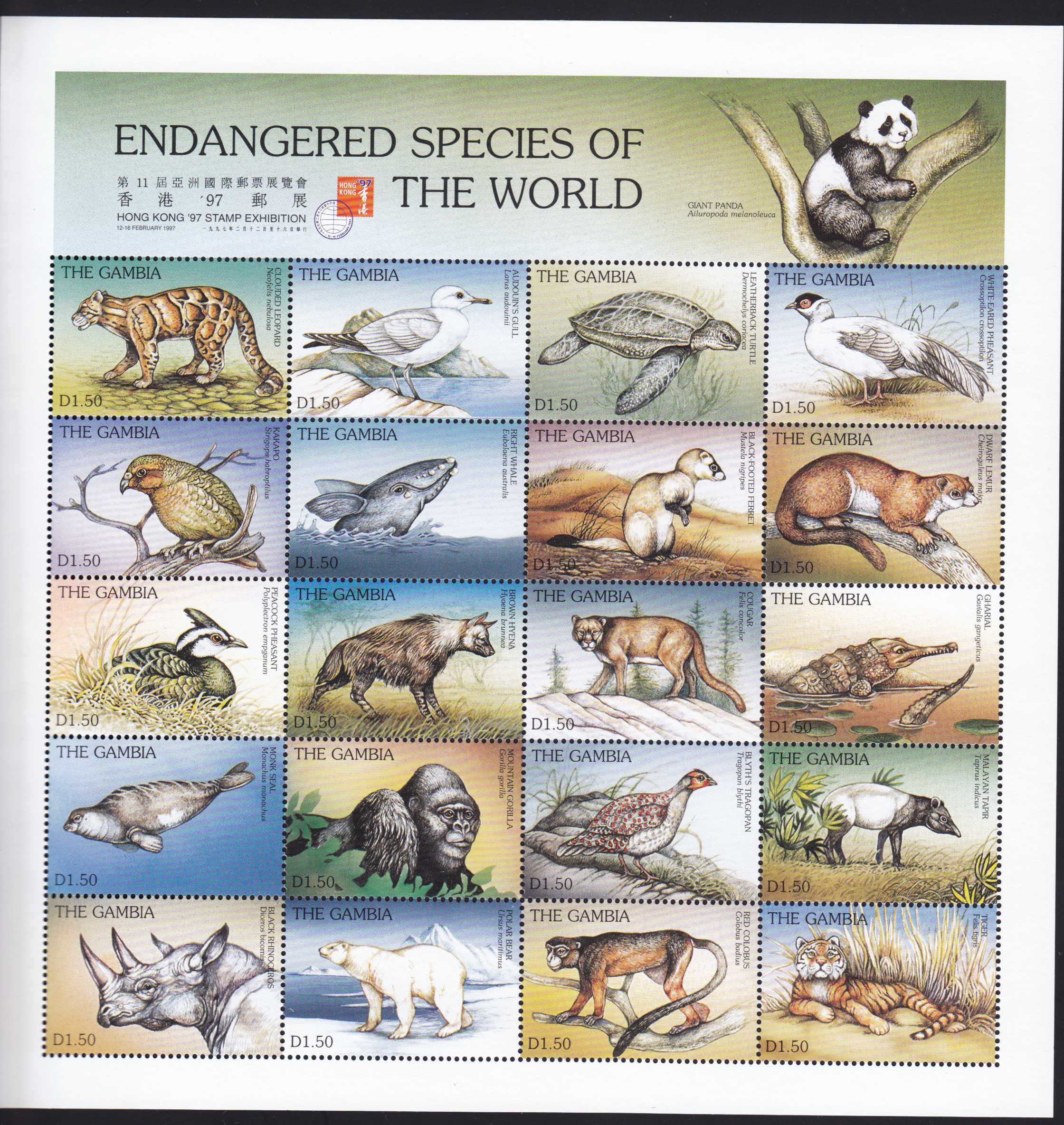 | N148591 | Гамбия 1997. Фауна. Сувенирный лист 20 марок (**) |  | 1155 |  |