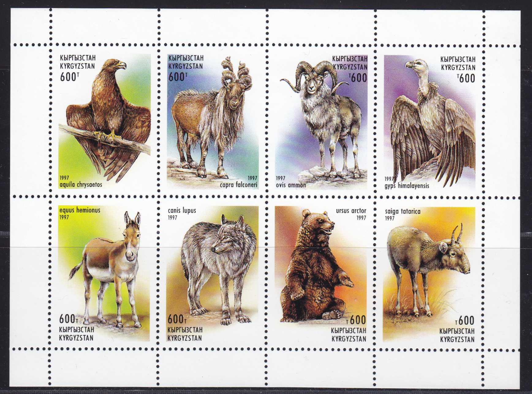 | N148596 | Киргизия 1997. Фауна. Сувенирный лист 8 марок (**) |  | 580 |  |