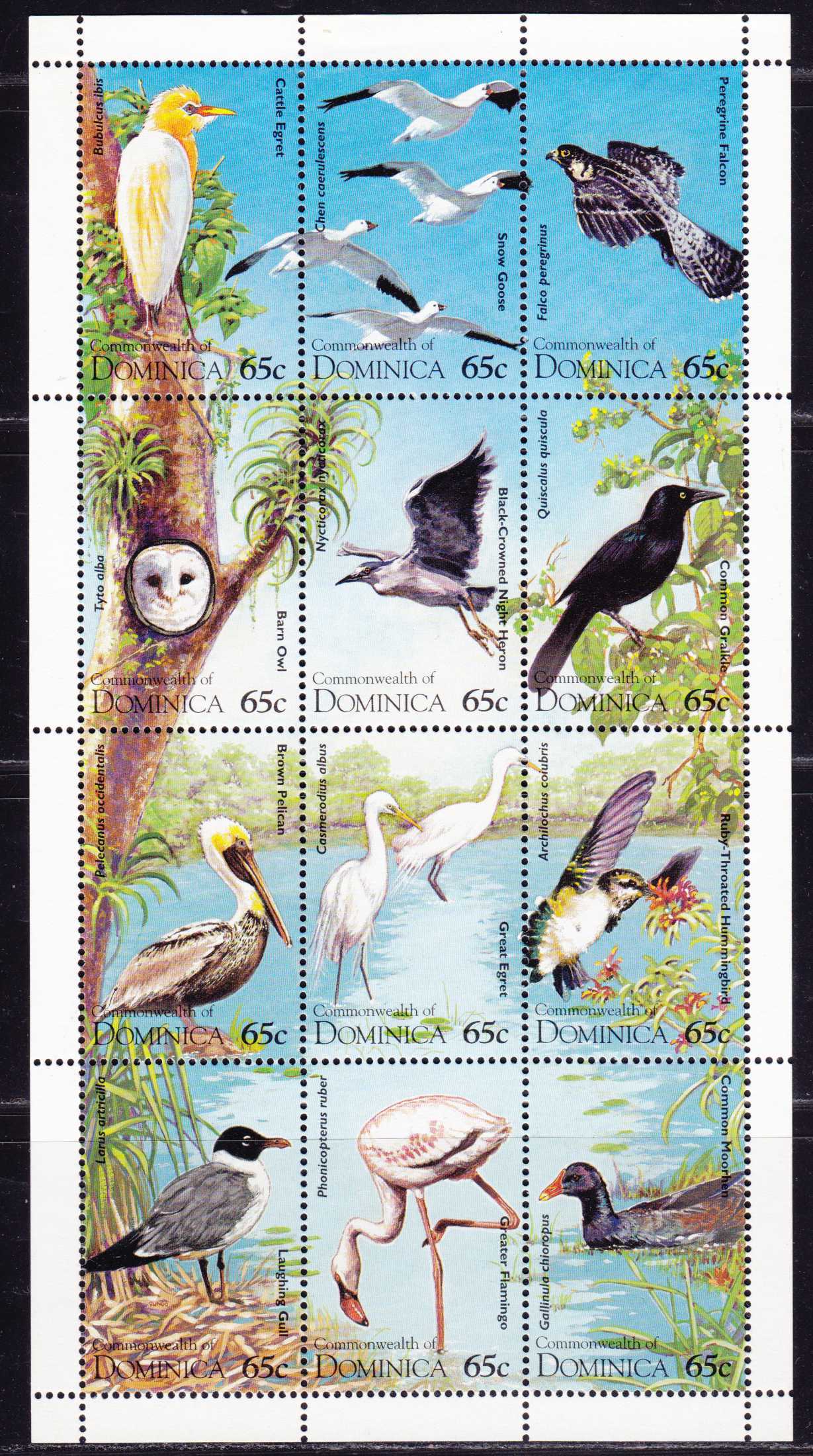 | N148539 | Доминика 1993. Птицы. Сувенирный лист 12 марок (**) |  | 940 |  |
