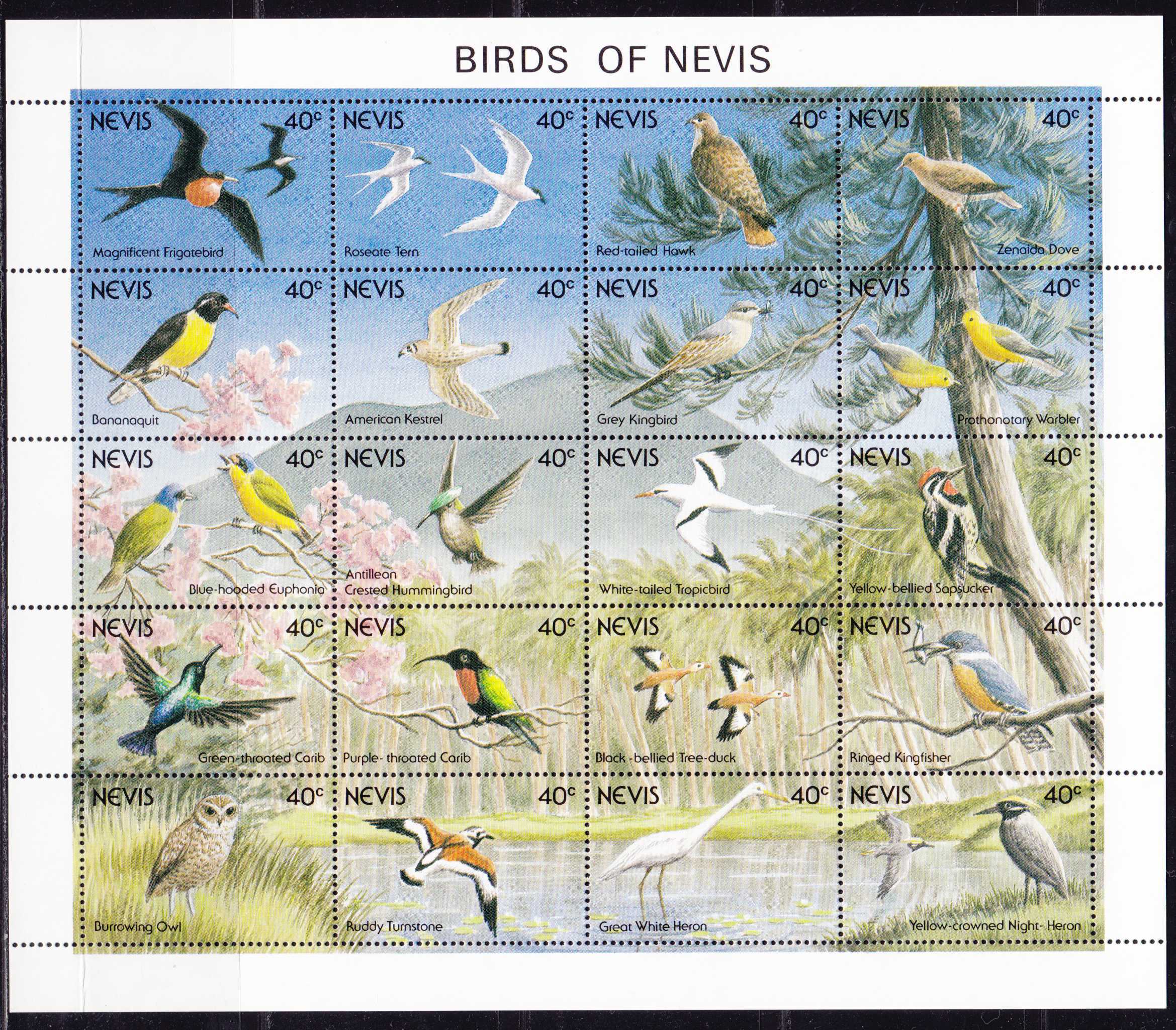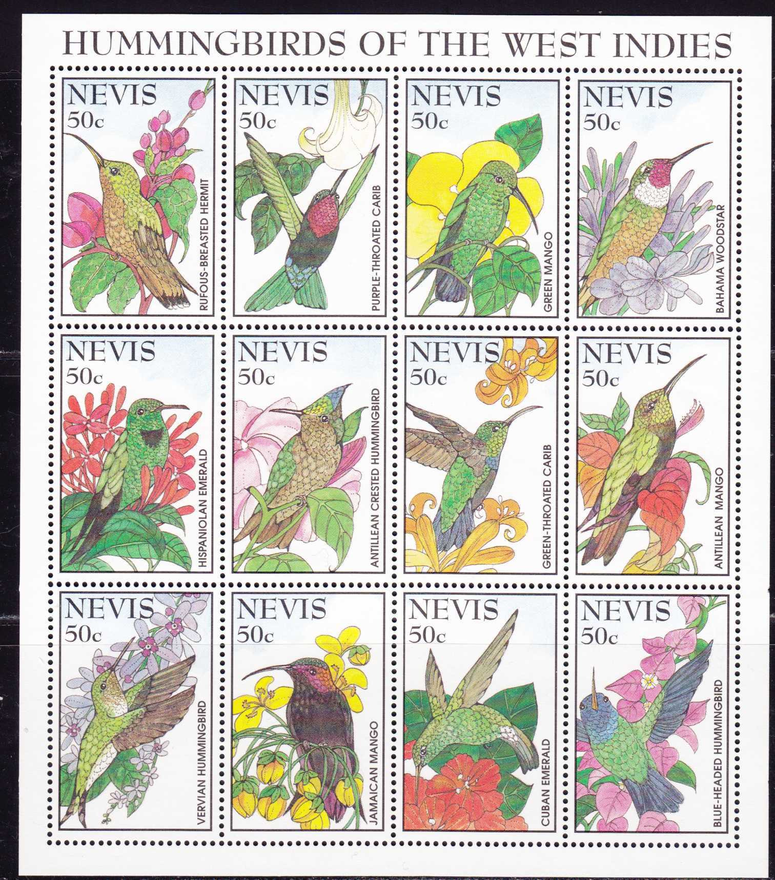 | N148541 | Невис 1995. Птицы. Сувенирный лист 12 марок (**) |  | 720 |  |