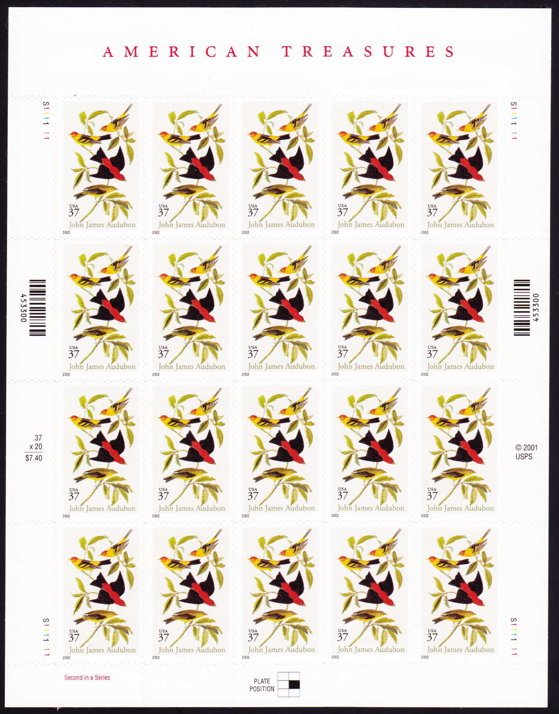 | N148544 | США 2002. Птицы. Сувенирный лист 20 марок-самоклеек (**) |  | 865 |  |