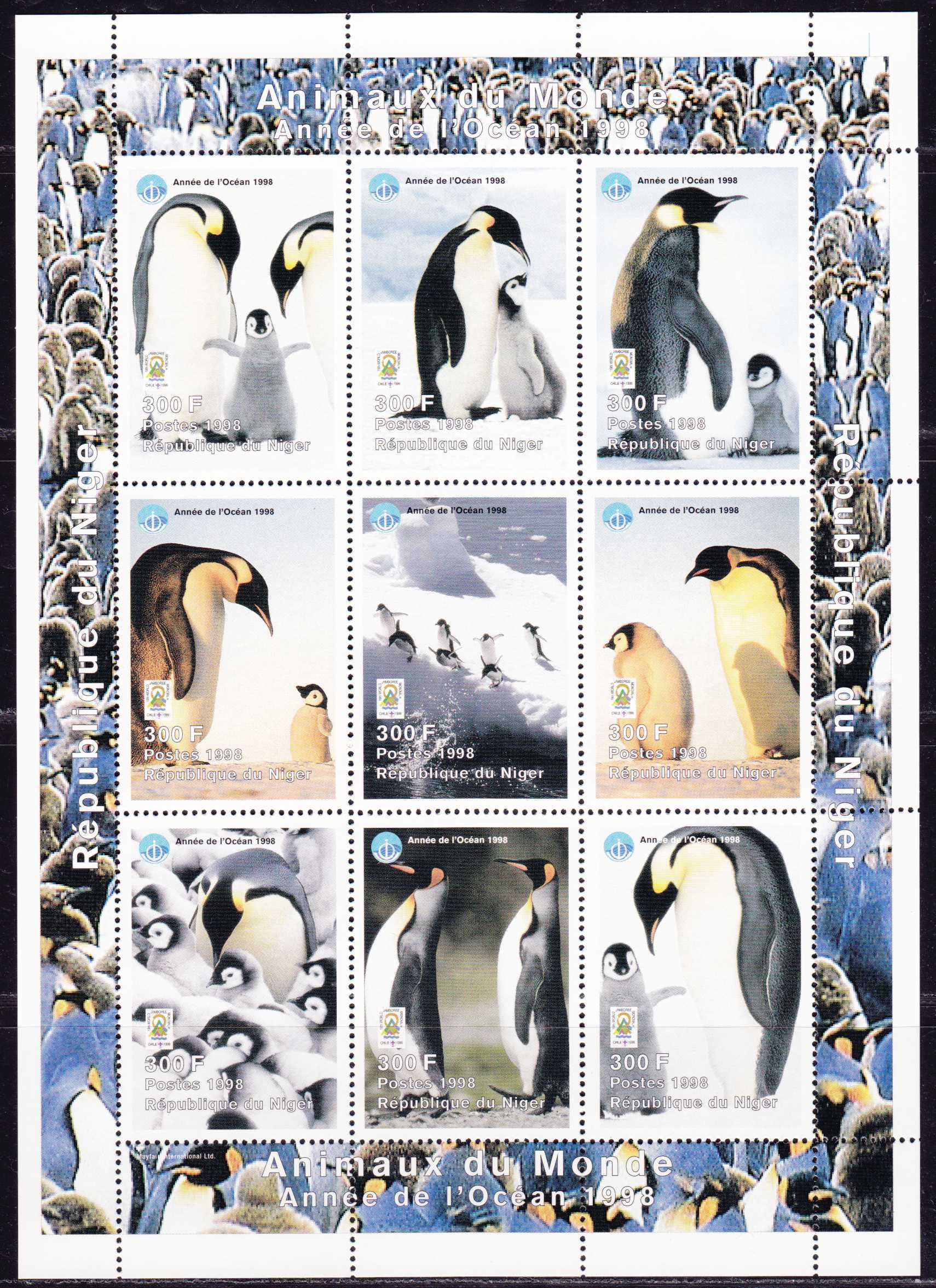 | N148545 | Нигер 1999. Пингвины. Сувенирный лист 9 марок (**) |  | 940 |  |