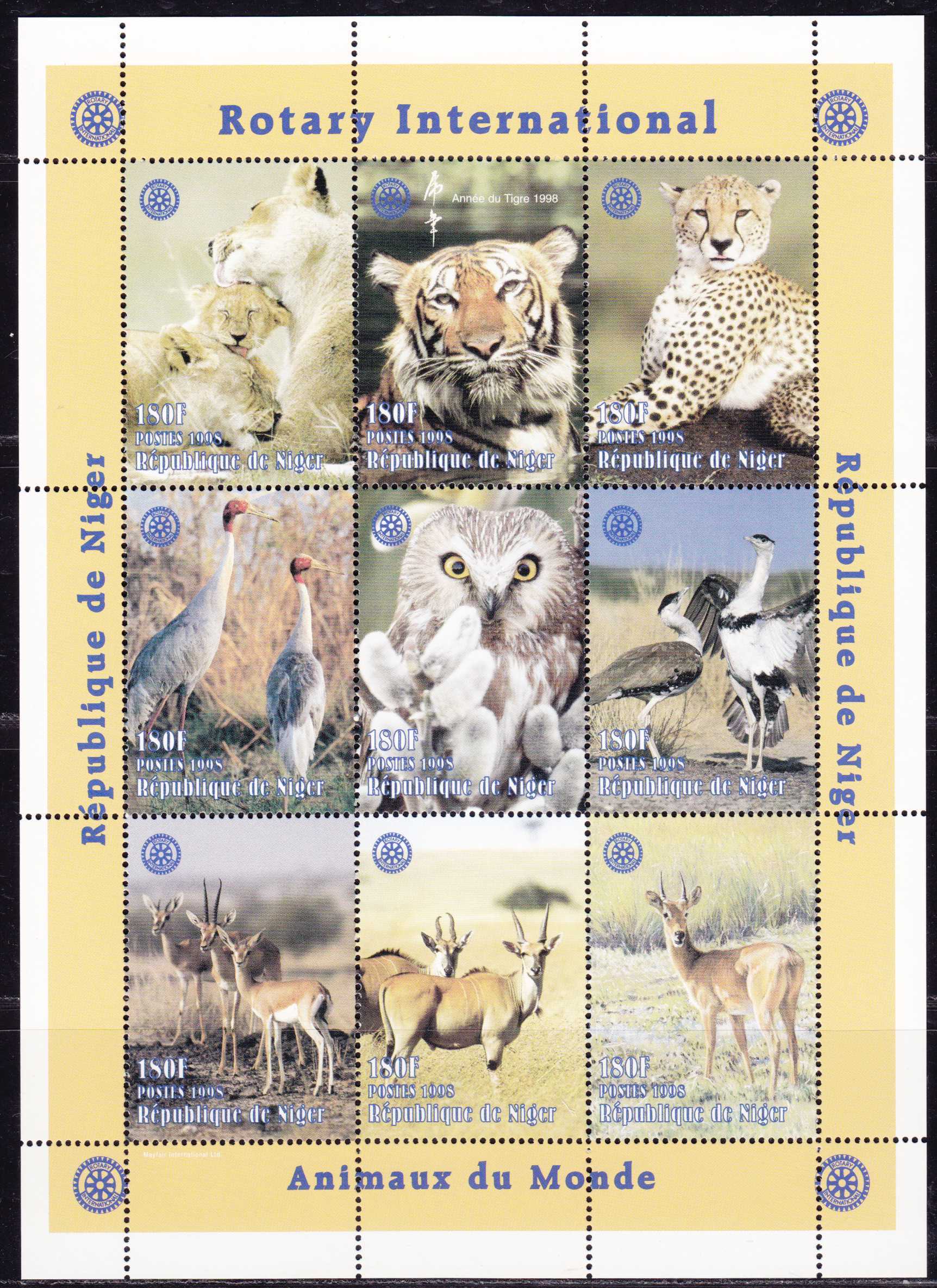 | N148546 | Нигер 1998. Птицы и другая фауна. Сувенирный лист 9 марок (**) |  | 940 |  |