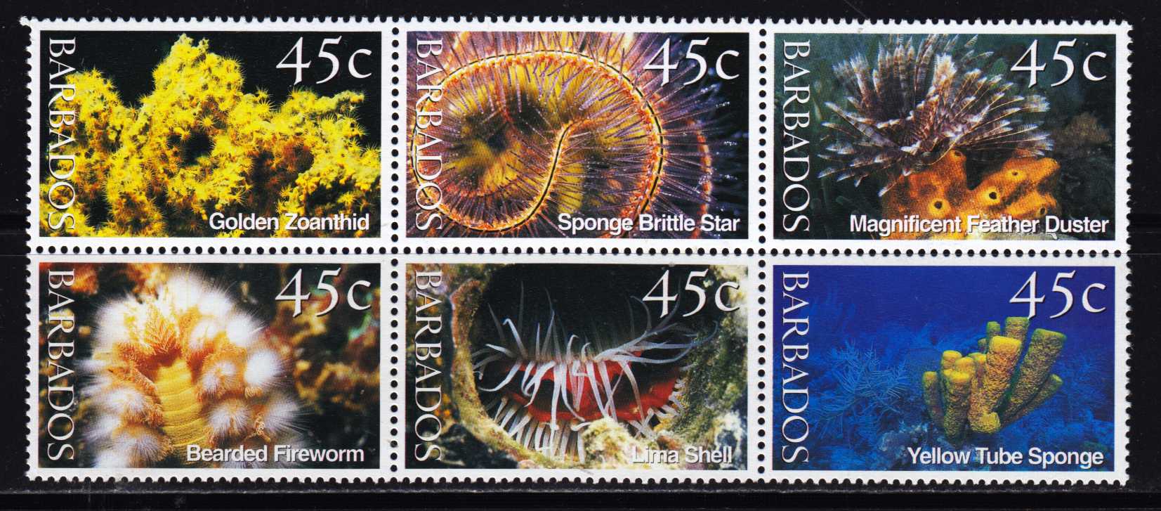 | N148557 | Барбадос 2001. Морская фауна. Сцепка 6 марок (**) |  | 360 |  |