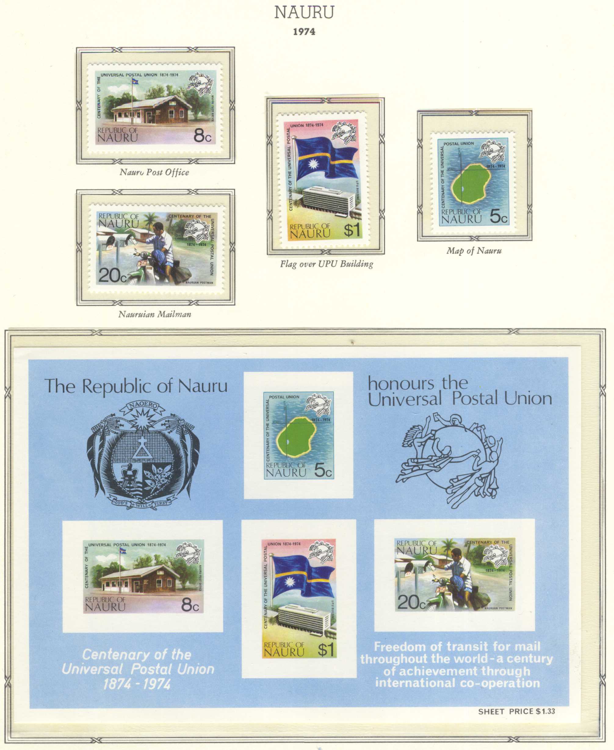 | N141302 | Науру 1974. Почта и телекоммуникации. К 100-летию ВПС. Серия 4 марки и сувенирный блок (**) |  | 435 |  |