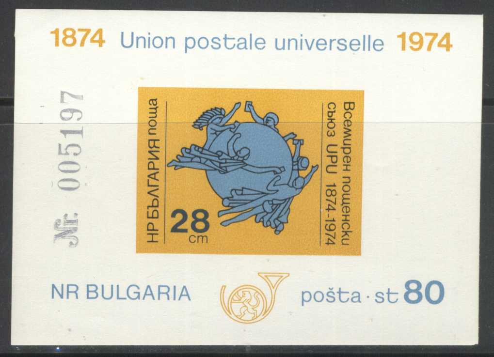 | N141310 | Болгария 1974. Почта и телекоммуникации. К 100-летию ВПС. Сувенирный номерной блок без зубцов (редкость) (**) |  | 220 |  |
